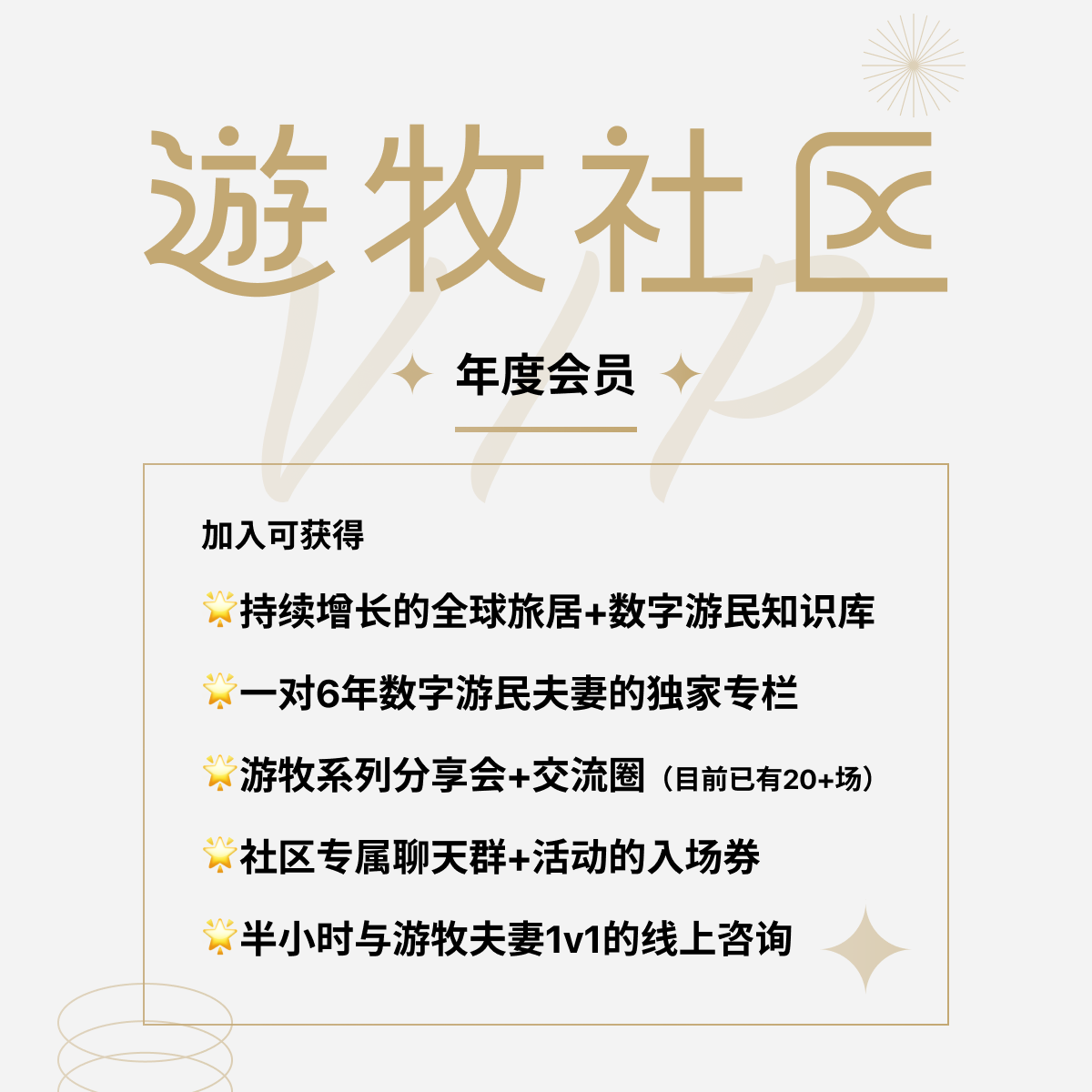 - 🌟游牧系列分享会+交流圈 (目前已有20+场)